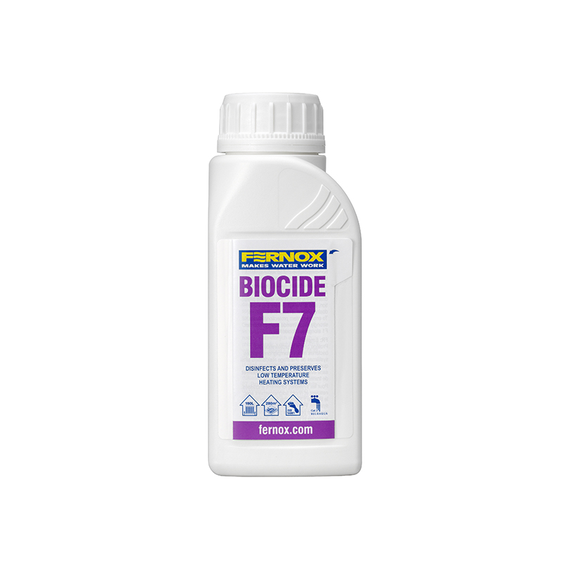 Biocide F7 skyddar mot bakterie- och svamptillväxt i värmesystem och icke-avdunstande kylvattenanläggningar i bostäder. Fernox rekommenderar starkt att Fernox Protector, till exempel Protector F1 eller