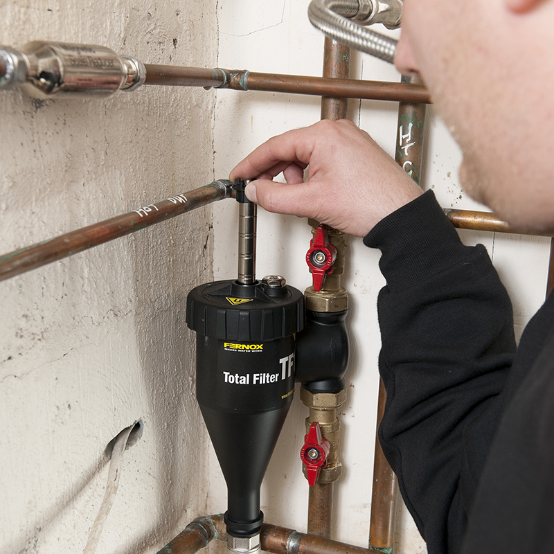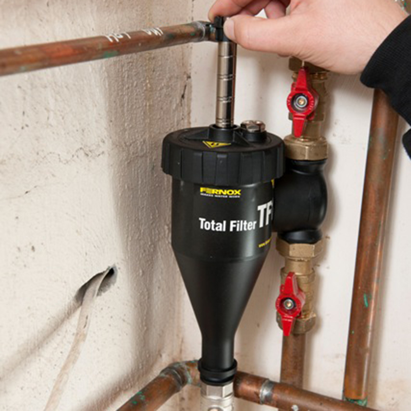Prisbelönta TF1 Total Filter kombinerar cyklonavskiljare med kraftfulla magnetiska Neodymium-föreningar, för att avlägsna magnetiska och icke-magnetiska föroreningar från systemvatten och innesluta dem säkert inom filtret. Detta filter består av precisionstillverkat kompositmaterial och passar på vertikala och horisontella rörledningar. För enkel installation fungerar det på upp till 45 graders vinkel. Den kan rengöras på några minuter och begränsar inte flödet.